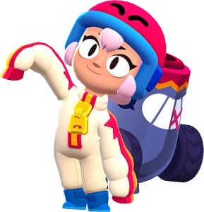 A aparência dela é de uma brawler criança, usando um capacete e roupas maiores do que suas medidas, dá para notar ainda que seu sorriso não tem um dos dentes, mostrando que ela é levada e pode ter perdido durante suas apresentações do Starr Park, que é onde ela se apresenta com sua irmã. Acompanhado da Brawler, temos o Clyde, um canhão lançador sobre rodinhas, com uma pintura característica.