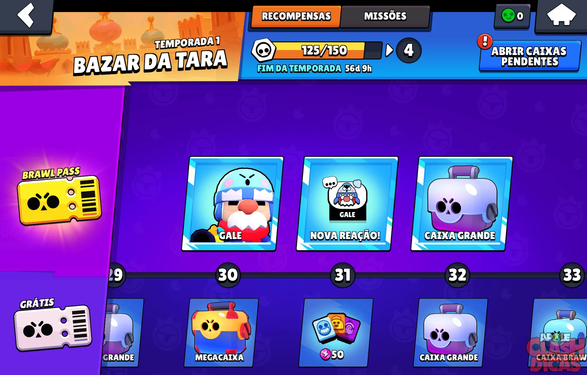 Extra: Quem compra o Brawl Pass também recebe as recompensas do passe grátis! Portanto quem compra recebe 33 Caixas Grande no total. Confira abaixo: