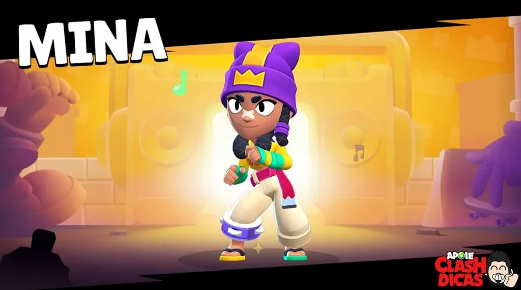 Mina é a mais nova personagem do universo de Brawl Stars. Ela dança break dance que integra e mistura movimentos de capoeira em suas batalhas, fazendo parte do trio do Ollie. Sua origem é paulista, com falas em inglês e também português.