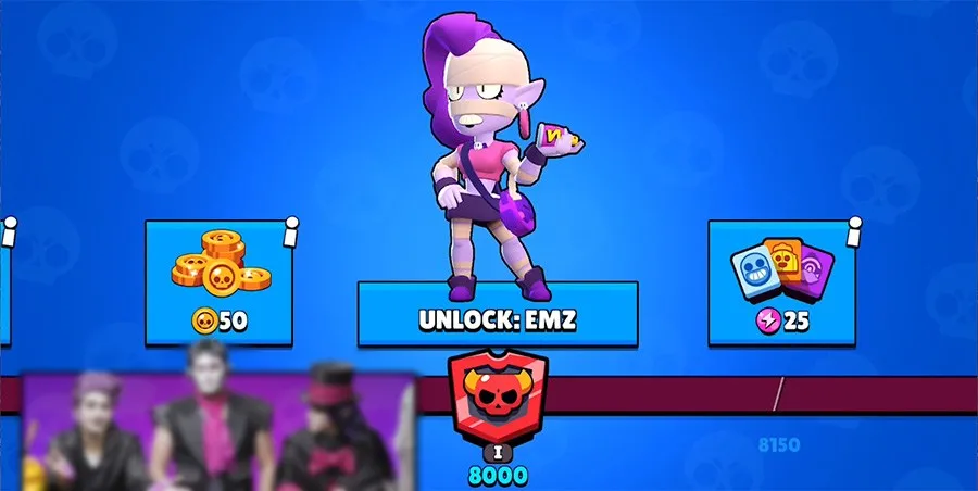 E teremos uma nova brawler chegando ao jogo, conheçam a Emz (pronuncia-se:Êmis). Não sabemos se o nome dela será diferente em português.