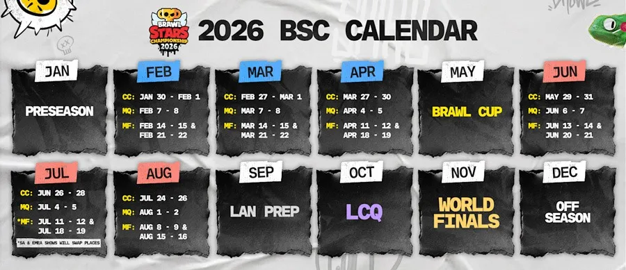 - Eventos Globais: Brawl Cup (meio ano), Qualificatória Última Chance + Finais Mundiais fechando. Turnê por 3 países novos (mais detalhes no final de janeiro).