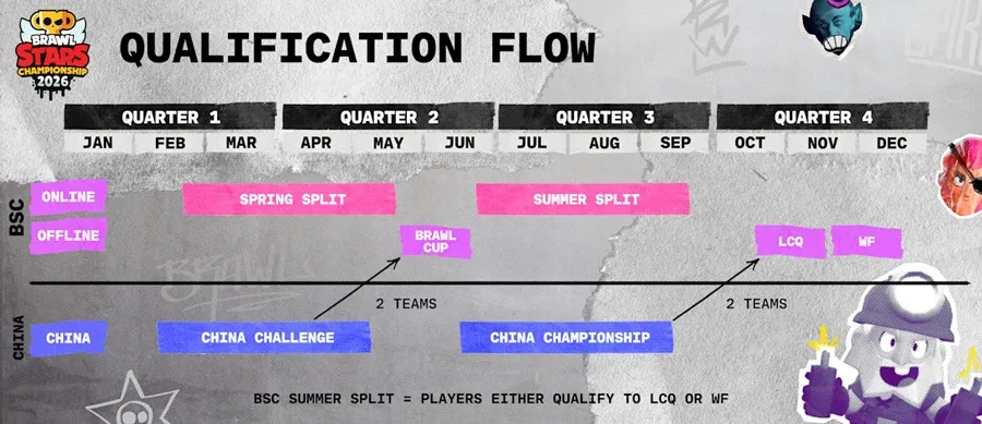 - A Brawl Cup contará com 12 equipes, trazendo competição global e representatividade internacional logo no início da temporada. As equipes também terão uma premiação maior e mais pontos BSC em jogo, recompensando o bom desempenho inicial e aumentando suas chances de chegar à Final Mundial.