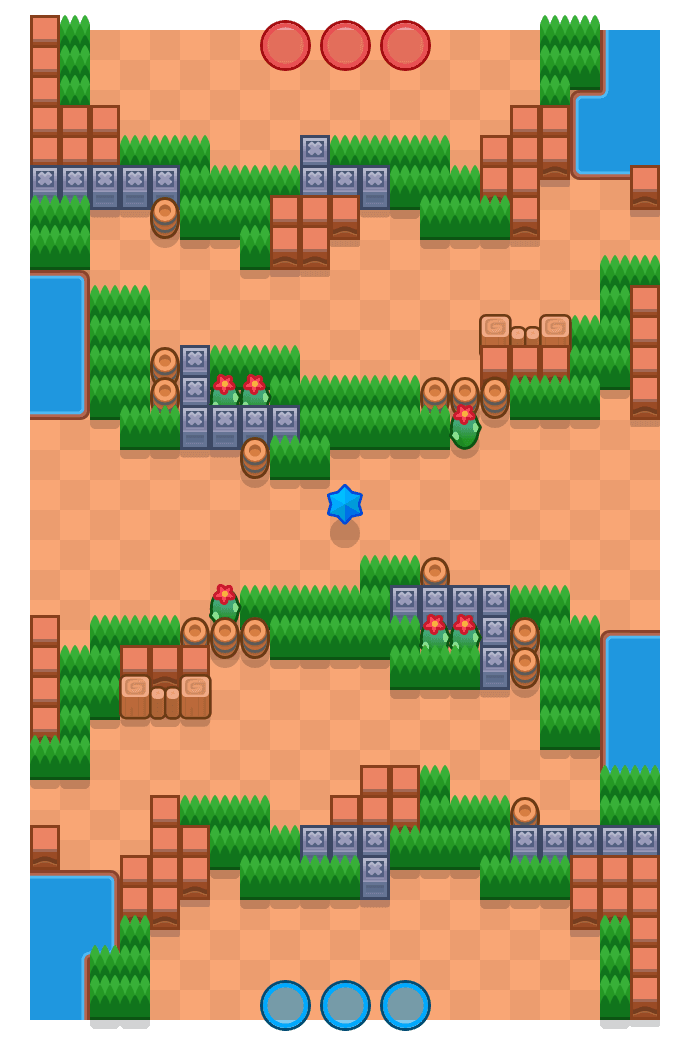 Mapa bem clássico com rotas laterais e centro disputado — controle de visão e pressão de meio fazem muita diferença.