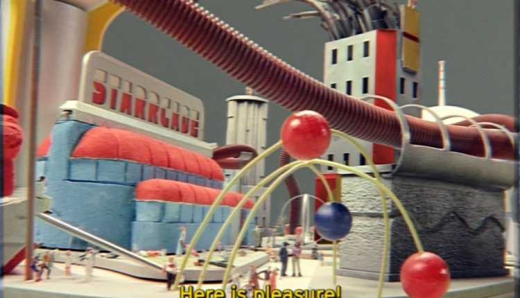 A partir daqui começa a apresentação do vídeo para futuros investidores para o Starr Park, mostrando que ele é um parque de diversões (pura fantasias) e menciona que lá não tem lugar para conflitos e desavenças (contraditório) e que nada de errado acontece.