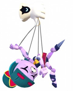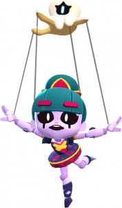 Gigi, uma marionete enfeitiçada que causa arrepios por onde passa e nunca se separa da sua luva mágica. Você pode encontrá-la no Bazar das Bizarrices, dançando entre as estantes.