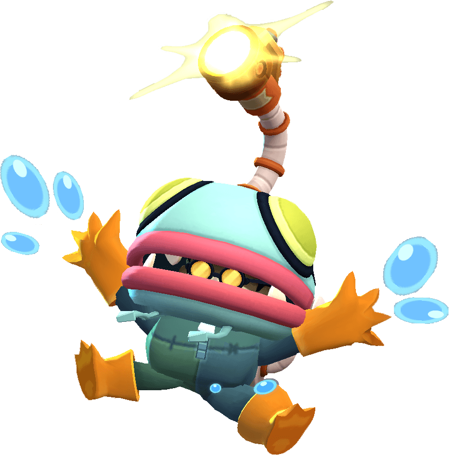 Glowbert mostra o rosto, e os inimigos que o encaram fogem de medo! Ele também dispara projéteis que causam dano e lentidão.