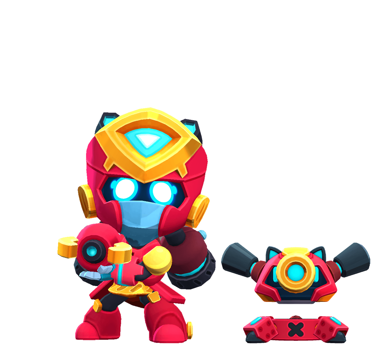 A arma de choque da Jessie dispara esferas de energia que quicam entre os inimigos. No Super, ela invoca uma torreta fofa, mas com metralhadoras letais.