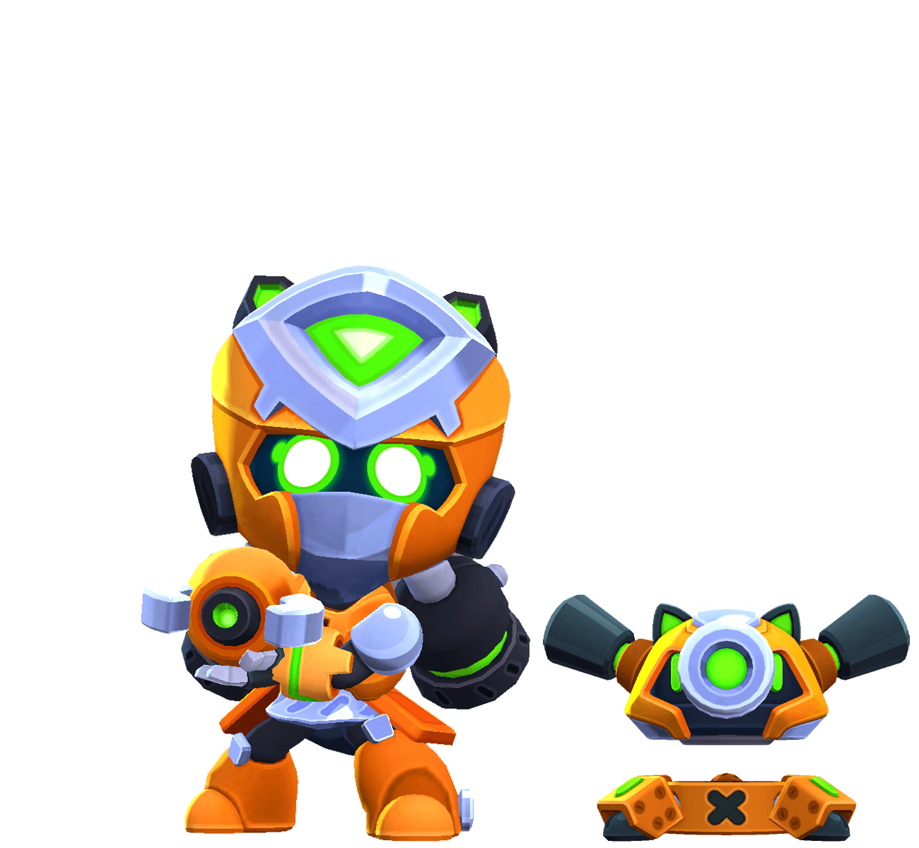 Esse Brawler possui Acessórios que são desbloqueáveis após atualizá-lo para o nível 7, podendo ser comprados usando moedas. O jogador escolhe qual deles utilizar em partidas.