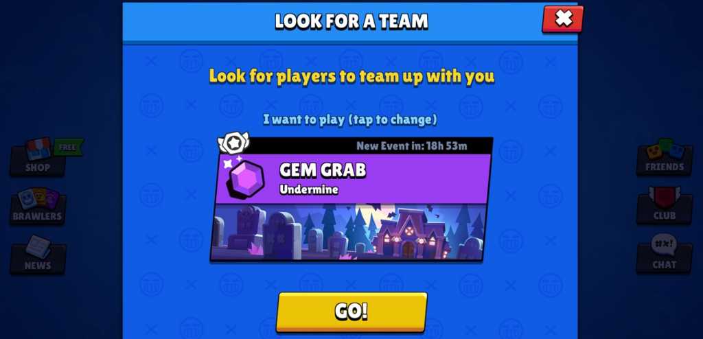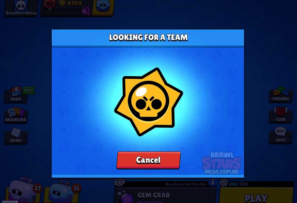 Nesse botão com ícone de lupa, ao clicar nele você poderá confirmar o modo de jogo que deseja encontrar parceiros e o matchmaking (sistema de combinação de jogadores) vai procurar outros jogadores que estão em busca de parceiros para o mesmo modo (mesma faixa de troféus).
