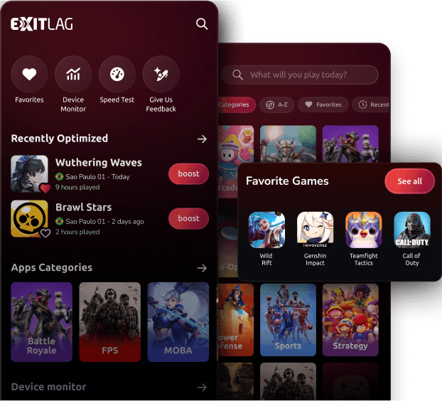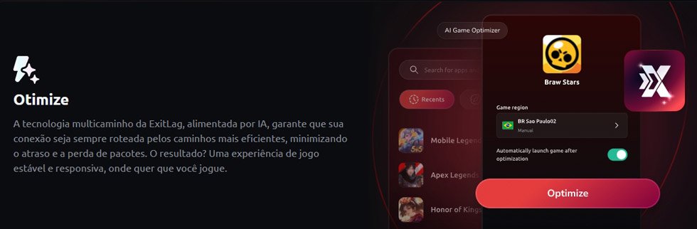 A ExitLag Mobile é a ferramenta que otimiza sua conexão em tempo real para +1300 jogos mobile, incluindo Brawl Stars. Usada por jogadores profissionais e streamers, a tecnologia multipath da ExitLag escolhe automaticamente as melhores rotas para os servidores.