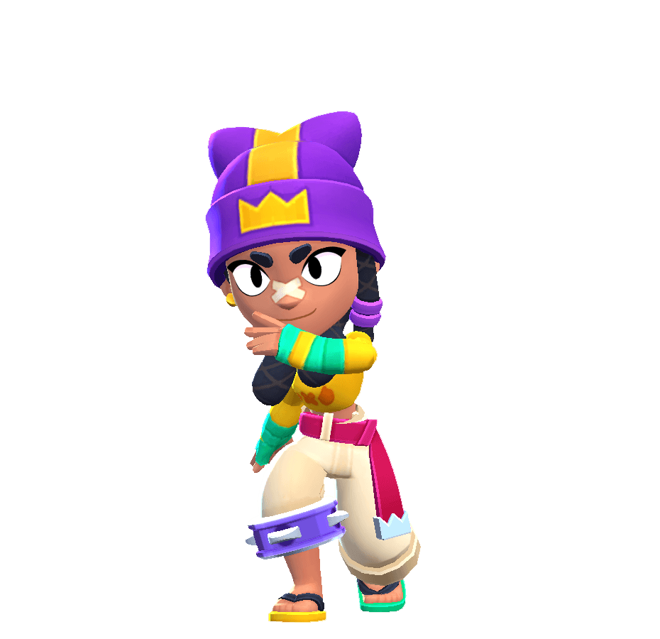 Dano da Sandália | Dano do Pandeiro | Dano | Alcance do Ataque | Velocidade de Recarga do ataque | Dano do Super | Alcance do Super | Carregamento do Super por Ataque | ||