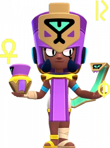 Ela chega como a nova Brawler do trio de Finx, contratada para tornar os enigmas das pirâmides ainda mais mortais — mas ela traiu o contratante e agora protege as vítimas dos seus truques. Com personalidade forte e visual egípcio imponente, ela domina o campo com ataques de alta mobilidade e veneno cumulativo que se acumula ao longo do tempo, permitindo controlar áreas e pressionar inimigos mesmo atrás de muros.