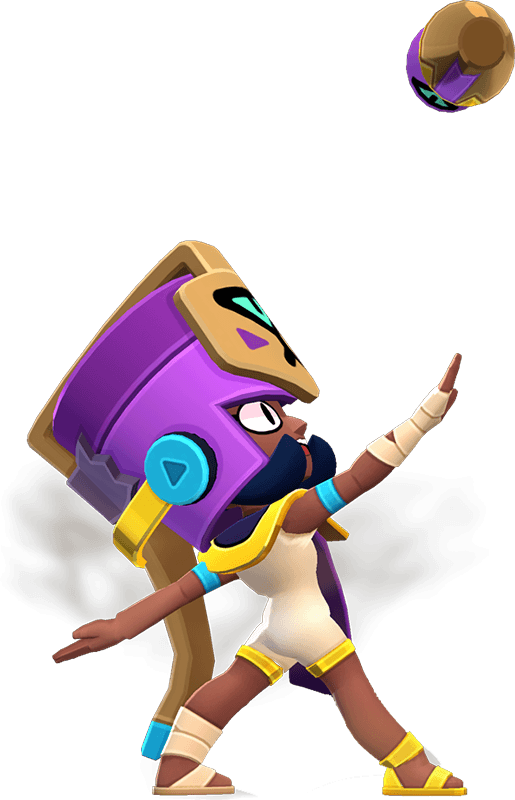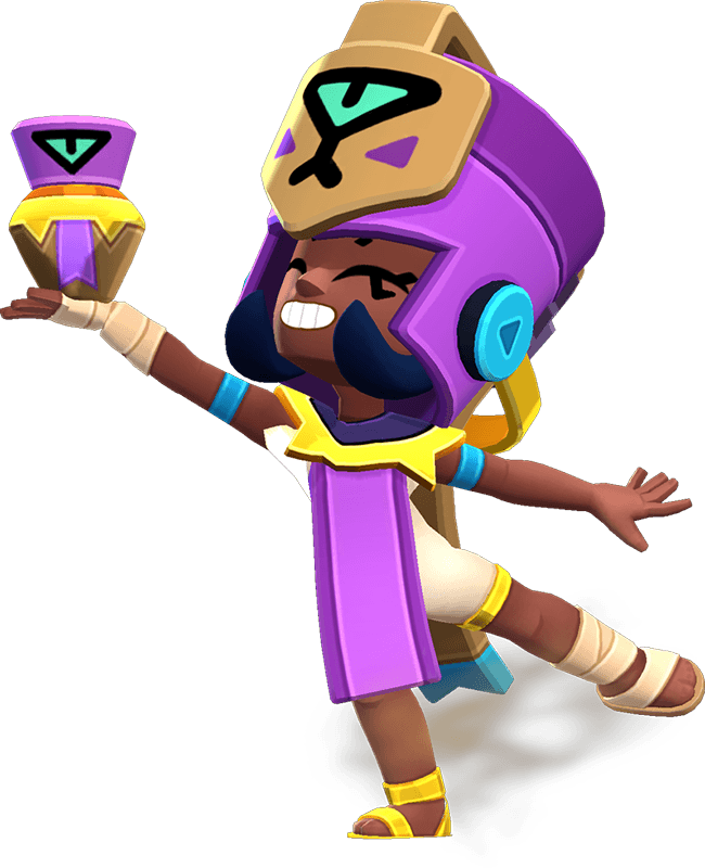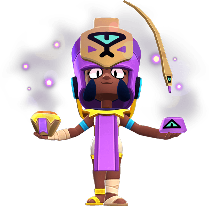 Ela chega como a nova Brawler do trio de Finx, contratada para tornar os enigmas das pirâmides ainda mais mortais — mas ela traiu o contratante e agora protege as vítimas dos seus truques. Com personalidade forte e visual egípcio imponente, ela domina o campo com ataques de alta mobilidade e veneno cumulativo que se acumula ao longo do tempo, permitindo controlar áreas e pressionar inimigos mesmo atrás de muros.
