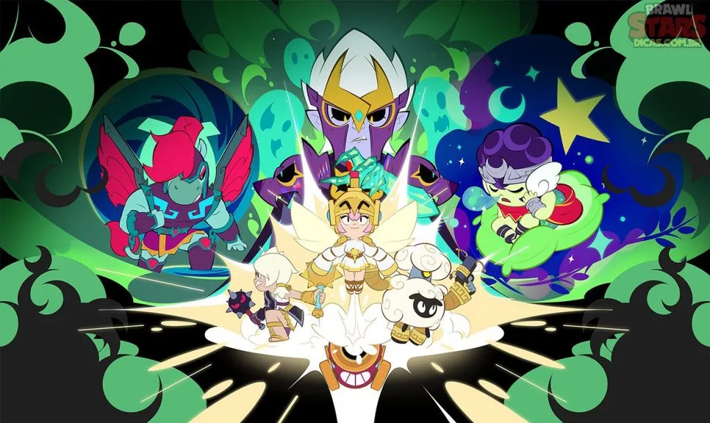 A misteriosa Alli, brawler mítica da vez, também ganhou uma arte especial para sua entrada no jogo. A tela mostra ela no centro, com um fundo cheio de detalhes que remetem à realeza estelar. Sensacional!