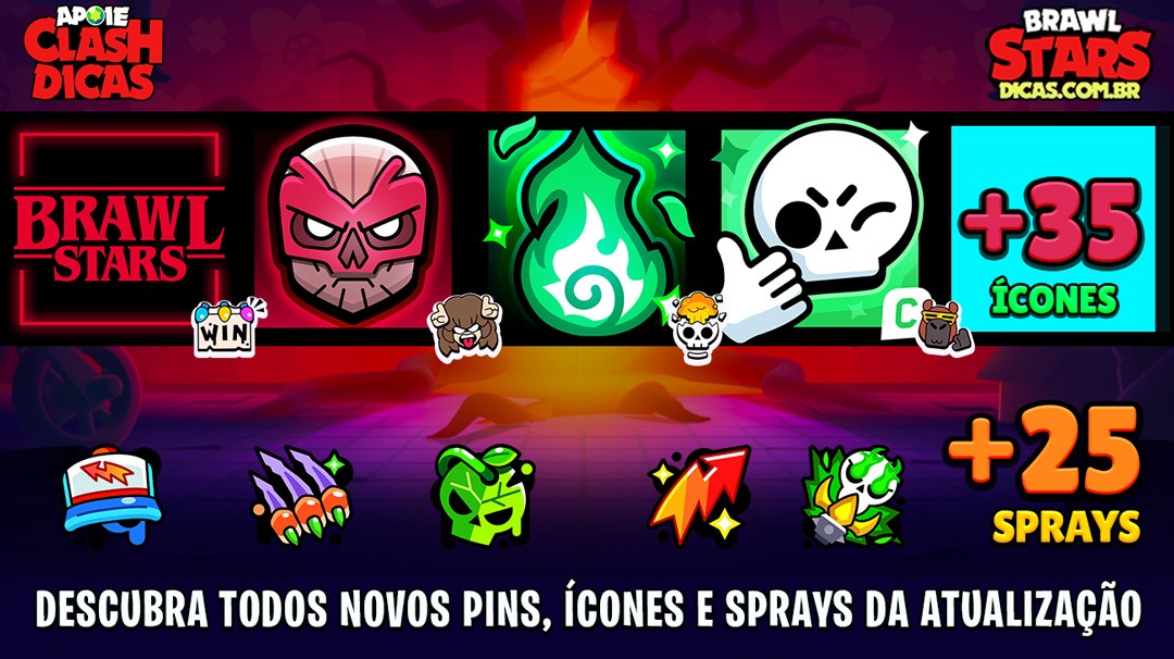 Com a nova atualização temos a chegada da temática Stranger Things e Robôs Mecha, que serão os próximos Brawl Pass, além da atmosfera sinistra da nova brawler Gigi e o conjunto de skins Ratos de Academia. E para cada uma dessas temáticas épicas teremos dezenas de reações, sprays e ícones de perfil exclusivos. Descubra todos eles aqui!