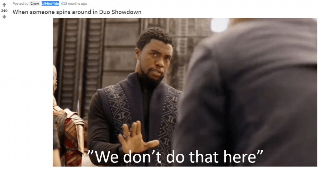 Quando o Duo Showdown foi lançado pela primeira vez, definitivamente havia uma boa quantidade de jogadores girando. Mas o que realmente me impressionou é que a comunidade ficou unida e se recusou a deixar acontecer! Eu até vi mensagens no Reddit se referindo a não se unir nos Duos.