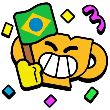 Esta Reação é de um troféu do Brawl segurando uma bandeira do Brasil, completamente animado, balançando a bandeira com muito confete ao redor, representando perfeitamente a energia única da nossa comunidade brasileira.