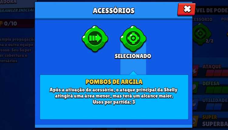 Basicamente a Shelly vai ganhar um alcance bem maior do que o costume, no seu primeiro ataque após a ativação do acessório. Mas em compensação, a área de propagação será menor.