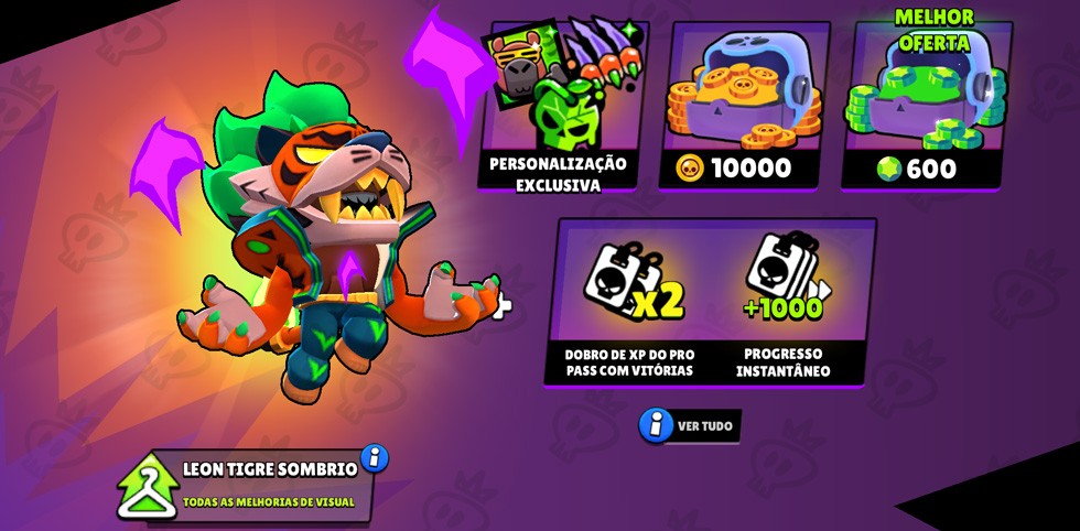 A estrela deste Pro Pass é a skin do Leon Tigre com evolução progressiva: