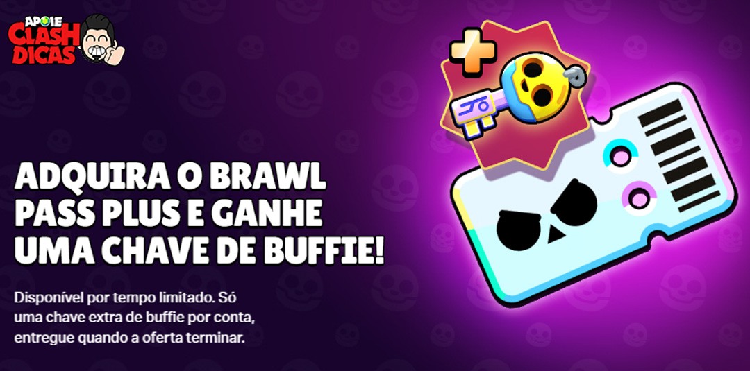 • Precisa ser a 1ª compra? Sim — o bônus (Chave de Buffie grátis) é limitado à primeira compra do Brawl Pass Plus na Supercell Store durante os dias desta promoção específica.