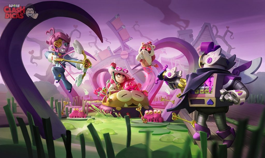 A cena com tentáculos, corações e Brawlers em clima de “romance perigoso” remete diretamente à temporada Brawlentines e ao novo modo com bomba de amor, em que qualquer erro pode significar eliminação instantânea. A paleta roxa e rosa passa essa mistura de fofura e perigo, combinando perfeitamente com o tom caótico dos novos modos especiais.