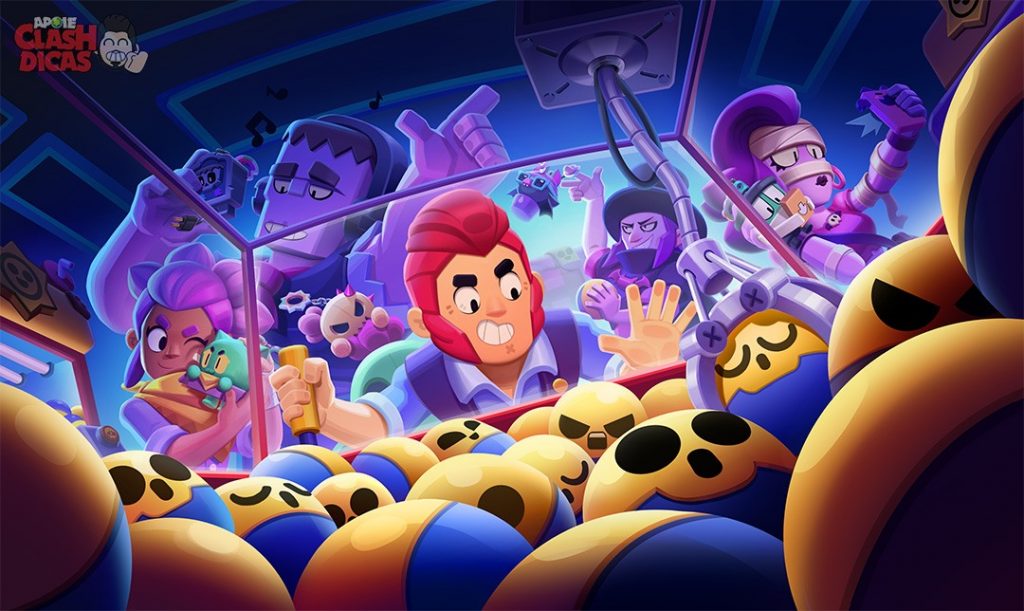 A arte mostra brawlers diante de uma máquina de prêmios gigante, perfeita pro lançamento da Máquina de Garra dos Buffies e o novo Cofre do Brawl Pass. Clima total de “caça ao prêmio” que casa perfeitamente com a primeira temporada após essa reformulação na progressão.