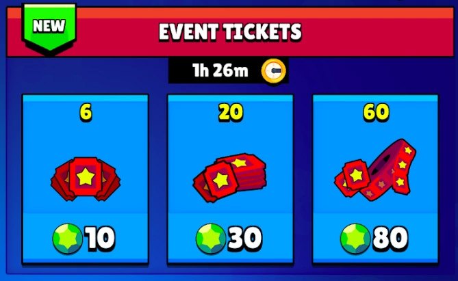 - Em 17/3/2020, o número de ingressos gratuitos dados desde o início dos eventos com ingressos aumentou de 2 para 5, e os ingressos não serão mais obtidos nas Caixas Brawl ou adquiridos com Gemas.